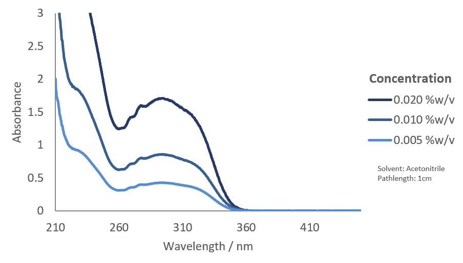 | Maxima Absorption Wavelength (nm) | 230, 295 |