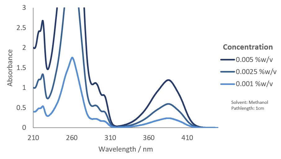 | Maxima Absorption Wavelength (nm) | 261, 291, 386 |