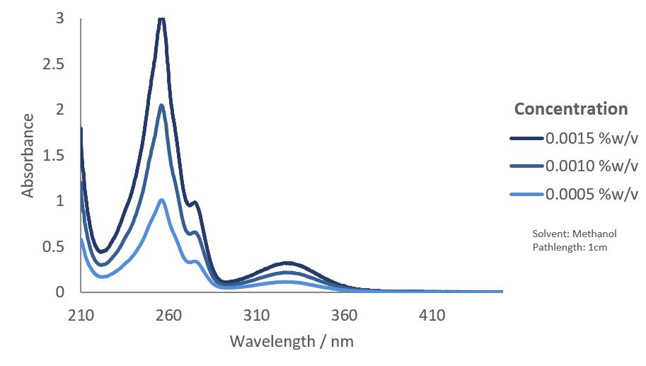 | Maxima Absorption Wavelength (nm) | 256, 327 |