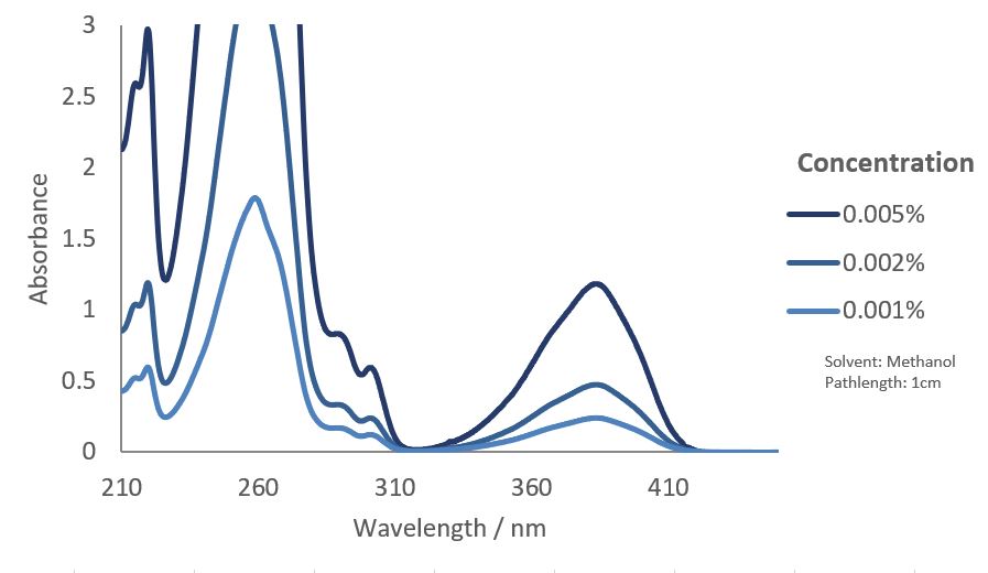 | Maxima Absorption Wavelength (nm) | 259, 383 |